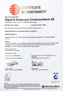 Signal & Anderssons båda produktionsanläggningar genomgick den 10–11/3 & 15–16/4 revision enligt BRC utgåva 6 och certifierades för fjärde året i rad med högsta betyg: A.